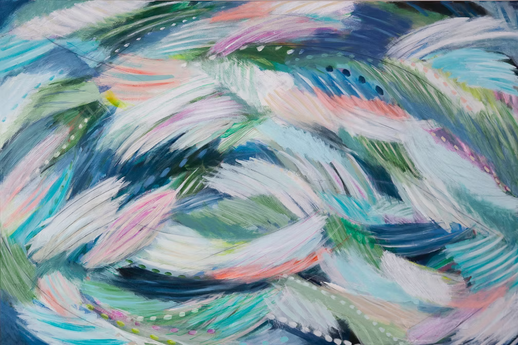 Carolyn Mackin’s inspiration is often tucked into the layered beauty of ancient cities. She draws from their twisting streets, hidden passways, and the intricacies of arched doorways. Her paintings evoke the same depth and mystery of those old cities, with bright colors and whimsical patterns. Mackin began painting in 2011 after many years as a fine art photographer. She explains this need for this transition: “I longed for a tactile dialogue with my work and the freedom of dancing with large canvases. It felt like a leap of faith, yet intuition called me—and still guides every step of my practice.” Mackin’s intuition seems to be interwoven into every step of her creation. When asked what advice she returns always to, again she alludes to intuition She says to “expand from the spark” – find the small part of a piece that is resonating and expand. This will be her first year with Waltham Open Studios.