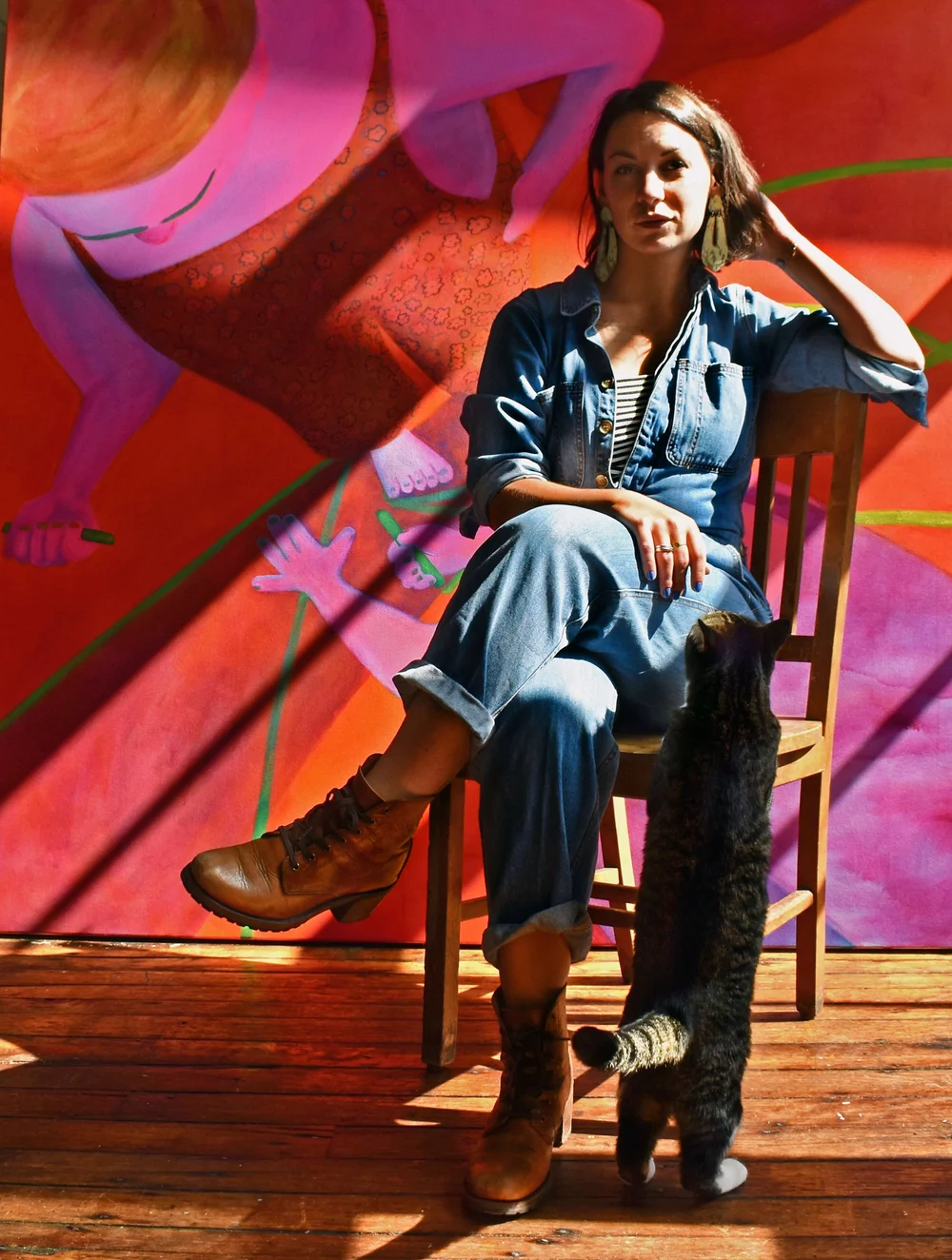 Genevieve Cohn cultivates inspiration through sustained attention. By moving through the world with an openness, she seeks to understand the potential in everything. It is not only her presence of mind that feeds her creativity, but a dedicated research practice as well. Her interests include the Women’s Land Army, the history of witches and witchcraft, feminist and queen separatist communities, and eco-feminist theory. Genevieve explains that “painting is the process through which the world gets translated. It holds complexity, by gathering time, thought, emotion, experience, and research into a single surface.” She credits a conversation with a college professor as the catalyst for a profound perception shift: she is an artist worth taking seriously. A member of Waltham Open Studios since 2019, Genevieve explains one of the benefits of being in community with other artists: “We are all pursuing a path that doesn't have any clear progression, so the more ways we are able to get together and dream and scheme and talk logistics and puzzle through problems, and commiserate over rejections, and imagine different versions of the future, the more real it all becomes.”